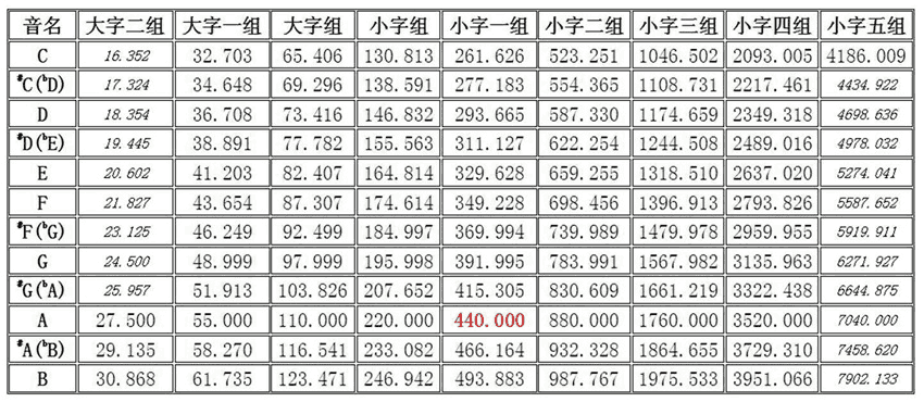 物理学家当年研究音高频率和音阶关系的时候,人为规定了一个标准音的频率,就是小字一组的a音,然后按照简单的音律学计算(主要是十二平均律),就得到了一系列的音高频率,比如钢琴中央键C音就是频率约为261Hz。