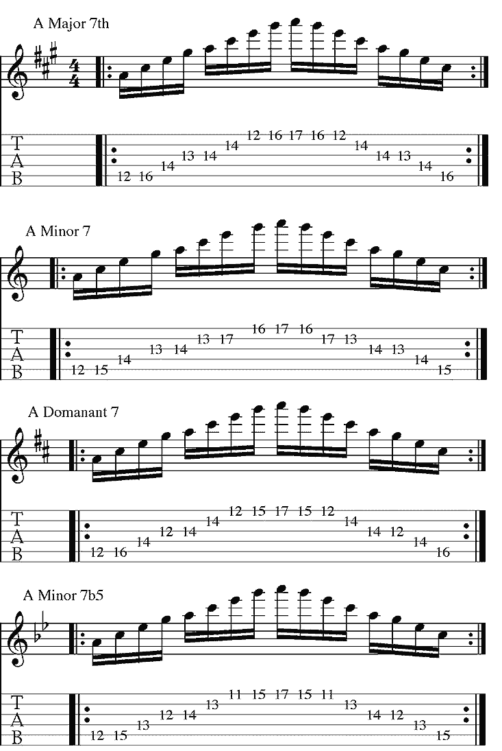 这种琶音技巧在新古典主义金属风格中极为常用,是最基本的旋律技巧。