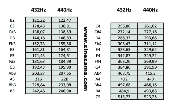 有一些所谓的黄金分割理论,认为432Hz与水的频率更为和谐。