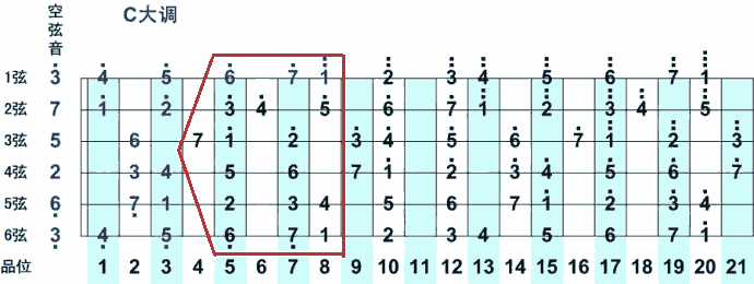 注意,仅仅是说食指即1指所处的位置,并不一定要按弦,往往1指放在5品的位置但并不按弦,这也仍然是第五把位,比如2指按6品时,这时如果1指就处在5品位置,则这就是第五把位了。