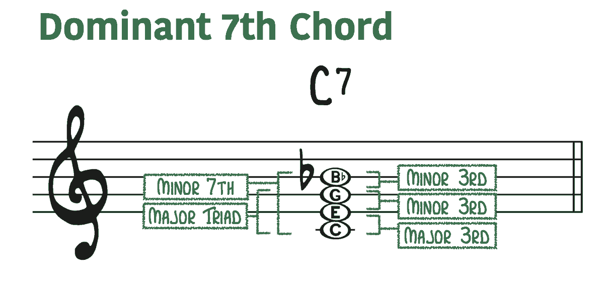 英文名字叫做Dominant Seventh Chord,这是和弦理论里最最重要的和弦了。传统和声学里和弦进行的推动力,基本上就全靠这个属七和弦。