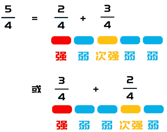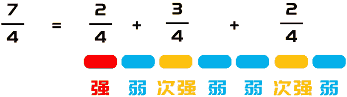 拍号只表示一个小节有多少拍子,但并不决定是那种拍子的混合组合。各种不同的强弱组合可能性很多。