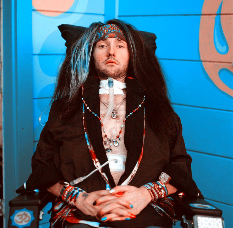 Jason Becker因为患有ALS(肌萎缩侧索硬化症,即渐冻症),全身瘫痪已久。但他本人非常幽默豁达,经常在自传或社交媒体中使用"Crip”这个词自嘲(比如他曾开玩笑说自己是"世界上最牛的Crip”)。