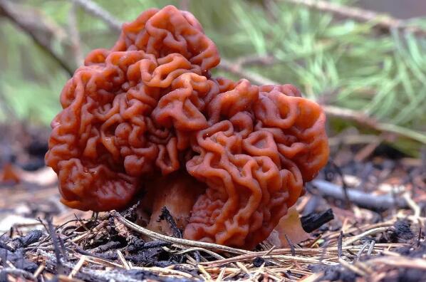 鹿花菌的菌盖上覆盖着很多褶皱,长得很像大脑。